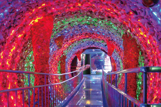 10パターンに変化する時空のトンネルは記念撮影スポットとして人気!世界110カ所から集められた貝と青色LEDが織りなす幻想空間が魅力的。貝で創られたオブジェやミニシアターが楽しめる。隣接する「魚々の里とまりん」でも使えます。